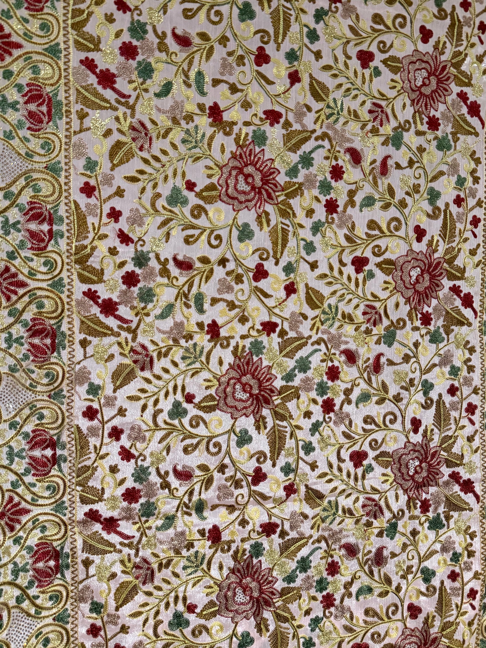 Embodying the essence of artisanal craftsmanship, the Flowerbed Phulkari Dupatta is a sublime homage to the rich textile heritage of Amritsar, India. Adorned in a delicate pink hue, embellished with lavish red floral motifs, it envelops the wearer in a bouquet of elegance, transforming every ensemble into an exquisite statement of style and sophistication.