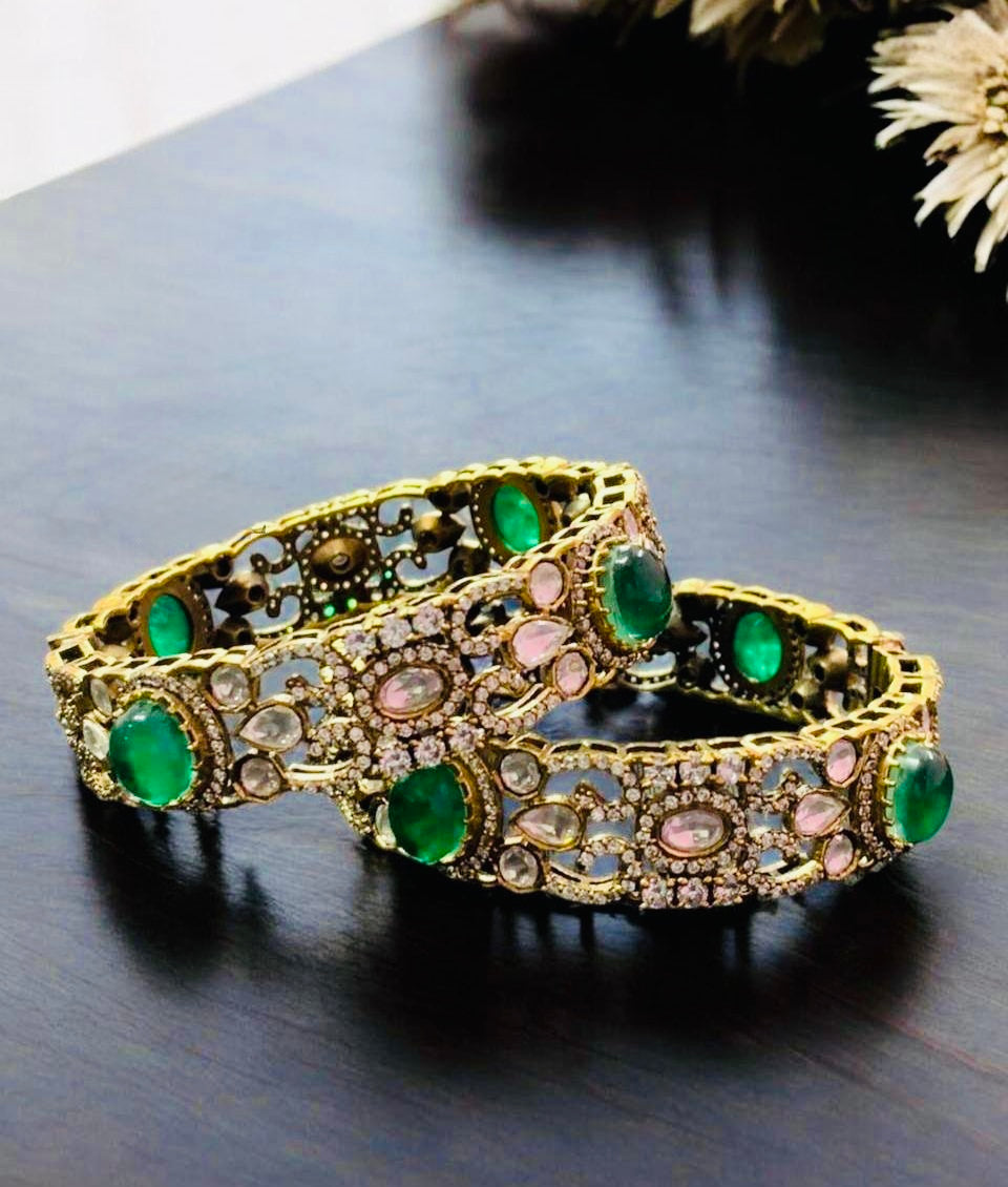 Elevate your elegance with Tiger Kadas, featuring premium moissanite and stunning doublet stones in vibrant green or ruby. Inspired by the regal Mangatrai style, these openable bangles blend tradition with contemporary flair, making them a perfect statement piece for any occasion. Embrace your inner royalty!