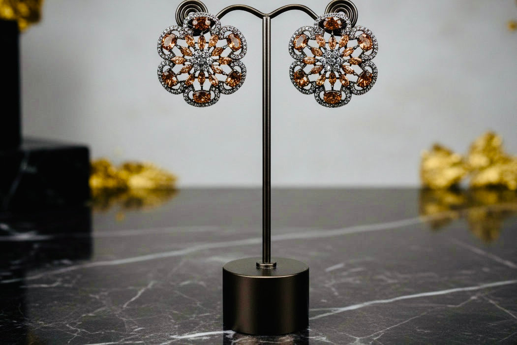 Elevate your style with Waker Studs! These exquisite earrings feature champagne brown CZ stones that sparkle brilliantly against a sophisticated gunmetal finish. Their versatile design makes them perfect for any occasion, effortlessly enhancing your look.